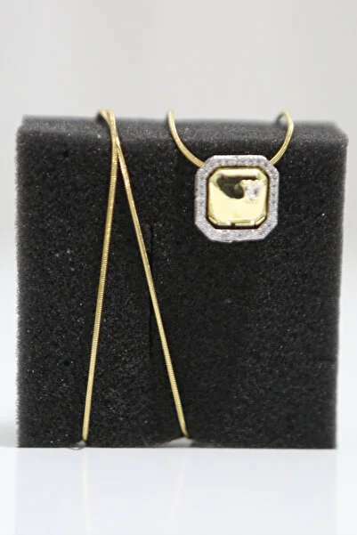 LUXON COLLECTION BAGET TAŞ FİGÜRLÜ ÇELİK GOLD KOLYE