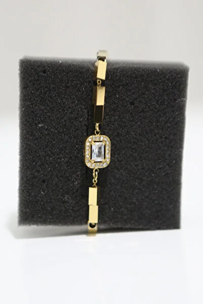 LUXON COLLECTION TAŞLI KÜP GEÇMELİ ÇELİK GOLD BİLEKLİK