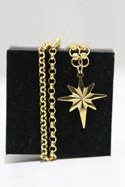 LUXON COLLECTION YILDIZ UÇ FİGÜRLÜ GEÇMELİ ZİNCİRLİ ÇELİK GOLD KOLYE